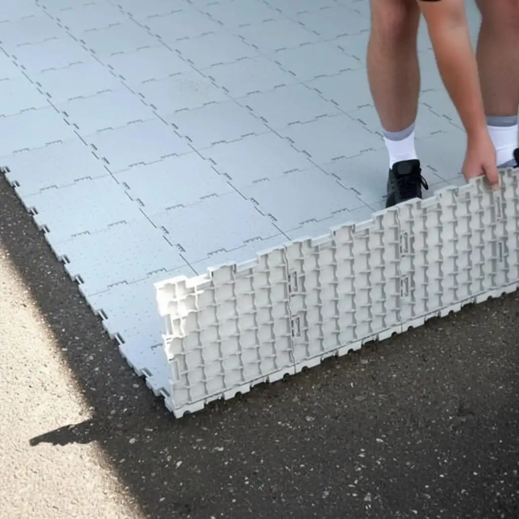 The modular rubber mat & rubber flooring tiles allow a quick installation and easy replacement. You can have them in your studios, exhibition spaces, and any outdoor temporary setup.